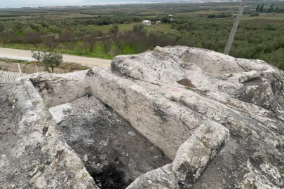 Bursa'da 2000 yıllık kaya mezarı asitle eritmeye çalıştılar
