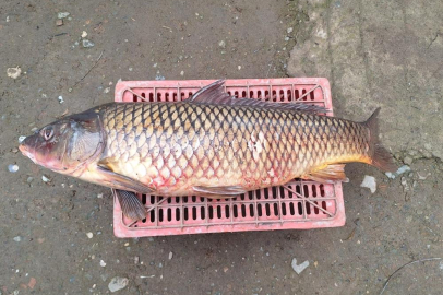 Kilosu 150 liradan satılan sarı sazanın büyüklüğü ise çocuğun balığı kucaklamasıyla ortaya çıktı.