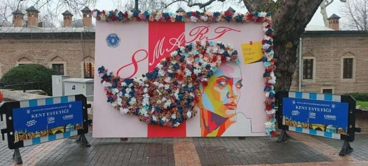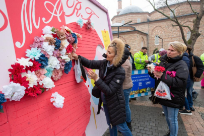 Bursa'da 8 Mart panosunu çiçek bahçesine çevirdiler