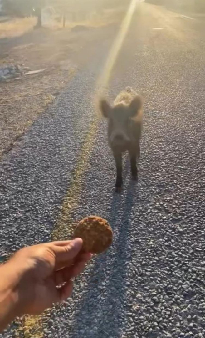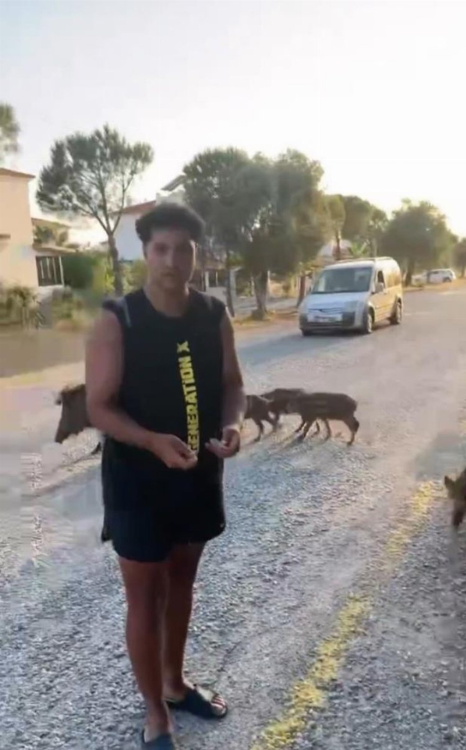 Domuzların zararsız olduğunu gören vatandaş ise domuzları kurabiye ile besledi. Bir süre daha gezen domuzlar daha sonra geldikleri zeytinlik alana giderek gözden kayboldu.
