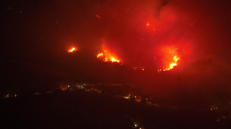 Yangının dron ile havadan kaydedilen görüntülerinde ise gecenin karanlığı adeta kızıla boyandı. Çam ağaçları alev alev yanarken, bazı noktalarda itfaiye ve orman ekipleri müdahalede bulundu. Rüzgarın zaman zaman hızını arttırması ekiplerin de işini zorlaştırdı. 3 köyde 1765 kişinin tahliye edildiği açıklandı. Gürsu Belediyesi hayvan barınağından kurtarılan 60 hayvan da başka noktalara nakledildi. Yangını söndürme çalışmaları sürerken, günün ilk ışıklarıyla hava araçlarının yoğun müdahaleye başlaması bekleniyor.