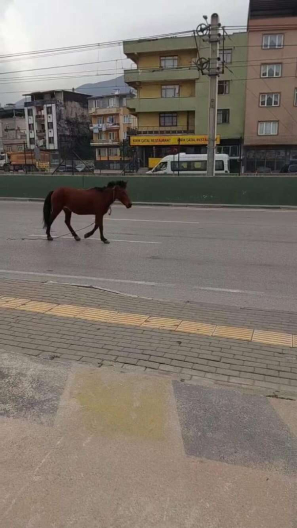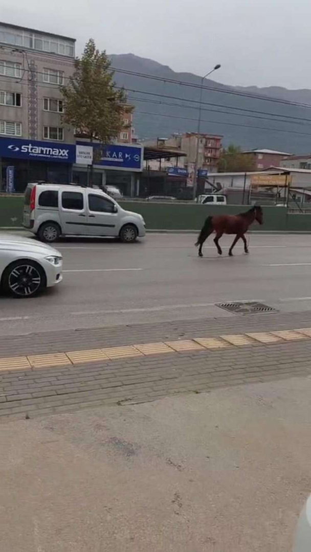 Bursa’da ana yola çıkan başıboş at tehlike saçtı. O anlar vatandaşların kamerasına yansıdı.