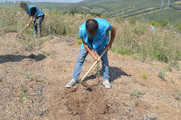 Bursa Denetimli Serbestlik Müdürlüğü ile Bursa Orman İşletme Müdürlüğü işbirliğinde fidanlar, toprakla buluştu.