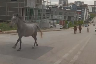 Bursa'da başıboş atlar cadde üzerinde dörtnala koştu