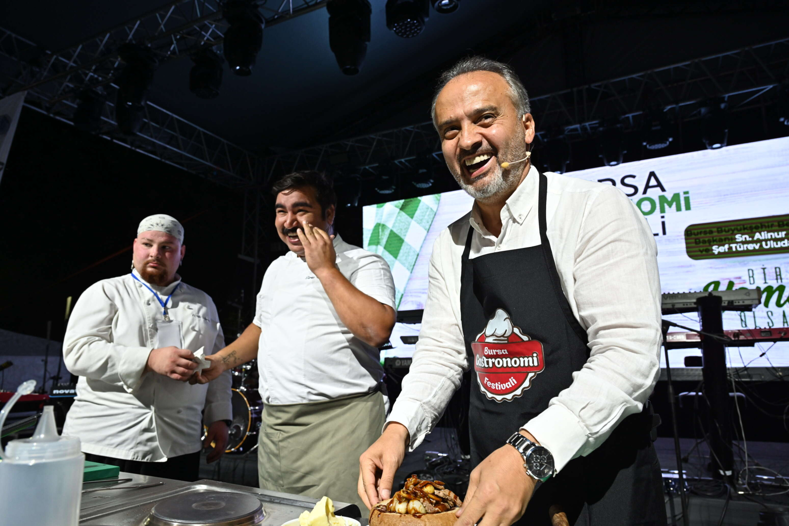 Bursa Büyükşehir Belediyesi’nin 'Yeşil Bursa, Yeşil Gastronomi’ temasıyla bu yıl ikincisini düzenlendiği 2. Bursa Gastronomi Festivali’nde başta Bursa olmak üzere, Türk, Balkan ve Kafkas mutfağının eşsiz lezzetleriyle buluşan Bursalılar, gece de Mustafa Ceceli konseri ile coştu. Etkinlik kapsamında ünlü şef Türev Uludağ ile mutfağa giren Büyükşehir Belediye Başkanı Alinur Aktaş, hazırladığı yemeği, alandaki vatandaşlara kendi elleriyle ikram etti.