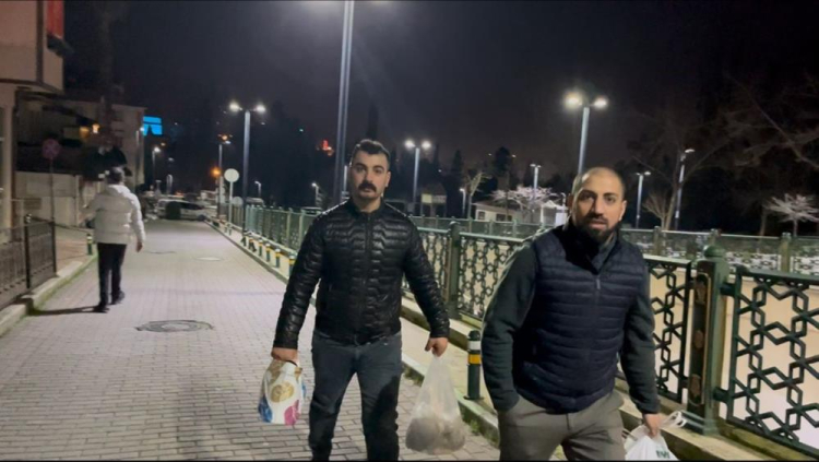 Mahalle muhtarlığının koordine ettiği gençler, imsak vaktinden 1 saat önce "pilava pilava" diye bağırıp zillere basarak vatandaşları sahura uyandırıyor.