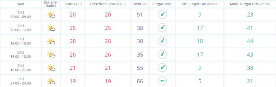 Parçalı ve az bulutlu geçeceği tahmin ediliyor. Rüzgarın; kuzey ve kuzeydoğu yönlerden kuvvetli olarak (40-60 km/saat) esmesi bekleniyor.