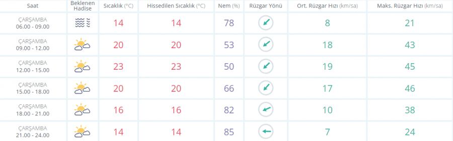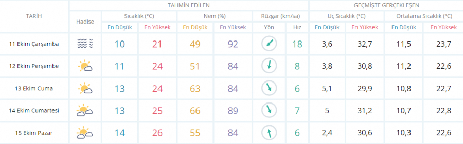 Meteoroloji Genel Müdürlüğü tarafından yapılan son değerlendirmelere göre: Ülkemizin kuzey ve doğu kesimlerinin parçalı, yer yer çok bulutlu, Marmara'nın kuzeydoğusu, Karadeniz kıyıları, Doğu ve Güneydoğu Anadolu'nun doğusu ile İskenderun Körfezi çevrelerinin sağanak, yer yer gök gürültülü sağanak yağışlı, diğer yerlerin az bulutlu ve açık geçeceği tahmin ediliyor. Yağışların, Doğu Karadeniz'in iç kesimlerinin yükseklerinde (1800 metre) karla karışık yağmur ve kar şeklinde görülmesi, Orta ve Doğu Karadeniz kıyılarında ise yer yer kuvvetli olması bekleniyor. Gece ve sabah saatlerinde Marmara'nın güneyi, İç Ege ve İç Anadolu'nun batısında pus ve yer yer sis bekleniyor.