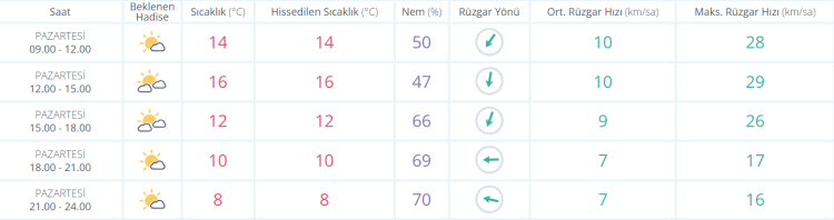 Parçalı ve az bulutlu geçeceği tahmin ediliyor. Rüzgarın; bölgenin güneybatısında kuzey ve kuzeydoğu yönlerden kuvvetli olarak (40-60 km/saat) esmesi bekleniyor. Sabah ve gece saatlerinde bölge genelinde pus ve yer yer sis bekleniyor.