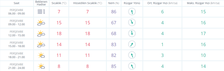 Meteoroloji Genel Müdürlüğü tarafından yapılan son tahminlere göre; Yurdun batı kesimlerinin parçalı ve yer yer çok bulutlu, Edirne ve Kırklareli çevreleri ile Çanakkale'nin güney, Balıkesir'in güneybatı kıyı kesimlerinin yağmur ve sağanak yağışlı, diğer yerlerin parçalı ve az bulutlu geçeceği tahmin ediliyor. Yurdun iç ve doğu kesimlerinde buzlanma ve don ile birlikte pus ve yer yer sis hadisesi bekleniyor. Doğu Karadeniz’in iç kesimlerinin yüksekleri ile Doğu Anadolu’nun yüksek ve dik yamaçlarında çığ tehlikesi bulunmaktadır.