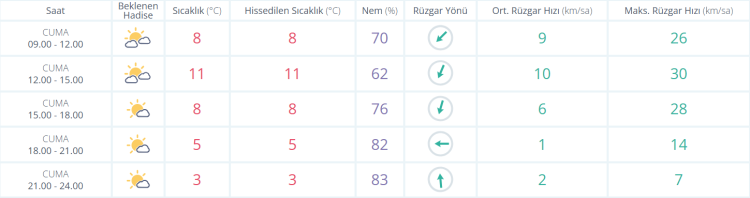 Meteoroloji Genel Müdürlüğü tarafından yapılan son tahminlere göre: Ülkemizin kuzey, iç ve doğu kesimlerinin parçalı ve çok bulutlu, Doğu Karadeniz kıyıları ile Ordu çevrelerinin yağmur ve sağanak yağışlı, Doğu Karadeniz’in iç kesimleri ile Kayseri, Kırşehir, Niğde, Nevşehir, Aksaray, Karaman, Tokat ve Ardahan çevrelerinin karla karışık yağmur ve kar yağışlı, diğer yerlerin az bulutlu ve açık geçeceği tahmin ediliyor. Ülkemizin iç ve doğu kesimlerinde buzlanma ve don ile birlikte pus ve yer yer sis bekleniyor. Doğu Karadeniz’in iç kesimlerinin yüksekleri ile Doğu Anadolu’nun yüksek ve dik yamaçlarında çığ tehlikesi bulunmaktadır.