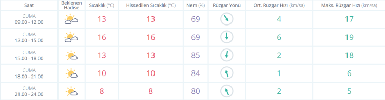 Meteoroloji Genel Müdürlüğü tarafından yapılan tahminlere göre: Ülkemizin batı kesimlerinin yer yer çok bulutlu, Çanakkale'nin doğu ilçeleri, Balıkesir'in batı kesimleri ile Kırklareli ve İstanbul'un kuzey kesimlerinin aralıklı sağanak yağışlı, diğer yerlerin parçalı ve az bulutlu geçeceği tahmin ediliyor. İç ve doğu kesimlerde buzlanma ve don ile birlikte Marmara ile iç ve doğu kesimlerde pus ve yer yer sis bekleniyor. Doğu Karadeniz’in iç kesimlerinin yüksekleri ile Doğu Anadolu’nun yüksek ve dik yamaçlarında çığ tehlikesi bulunmaktadır.