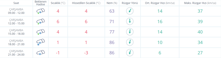Çok bulutlu, yağmurlu, zamanla karla karışık yağmurlu, kuzey kesimleri ve kentin yüksekleri hafif kar yağışlı