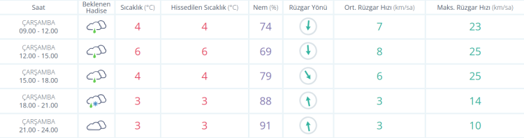 Çok bulutlu, karla karışık yağmurlu, yükseklerinin kar yağışlı geçeceği tahmin ediliyor. Yağışların, batısının yükseklerinde yerel olarak kuvvetli olması bekleniyor.
