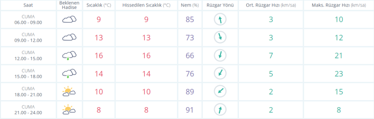 Çok bulutlu, öğle saatlerinde parçalı bulutlu ve yağmurlu