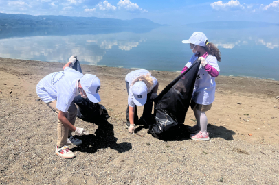 Bursa Büyükşehir Belediyesi'nin ‘Doğa için buluşuyoruz’ temasıyla düzenlediği ‘Çevre Haftası Şenliği’ kapsamında ilkokul öğrencileri tarafından İznik İnciraltı Halk Plajı’nda kıyı temizliği yapıldı.