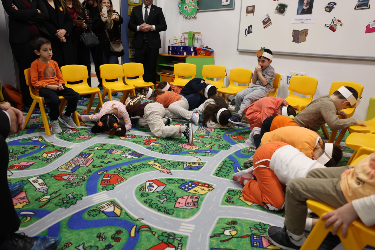 Bir yandan Bursa’yı dirençli ve afetlere hazırlıklı hale getirmek için projeler üreten Bursa Büyükşehir Belediyesi bir yandan da toplumsal farkındalığı artıracak çalışmalarını sürdürüyor. Bu kapsamda Alacahırka ve Üçevler Bursa Yuvam Çocuk Etkinlik Merkezlerini ziyaret eden Bursa Büyükşehir Belediye Başkanı Mustafa Bozbey, öğrencilerle bir araya geldi. Çocuklara afet bilincini artırmaya yönelik hazırlanan boyama kitapları hediye eden Başkan Bozbey, minik öğrencilerle birlikte boyama da yaptı. Öğrencilere süt ve meyve de ikram eden Başkan Bozbey, afetler hakkında bilgiler verdi.