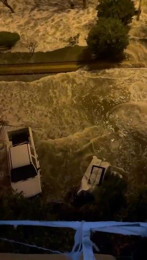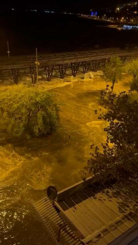 Bursa’da sabah saatlerinde başlayan şiddetli fırtına ve yağmur hayatı felç etti. Gemlik ilçesinde şiddetli fırtına sebebiyle deniz taştı. Saatte 60 kilometreyi bulan şiddetli rüzgar, denizi taşırdı. Sokaklar göle dönerken, deniz kıyısında bulunan bir gemi yan yattı. Sahil kordonlarını adeta savaş alanına çeviren sular, önüne aldığı eşyaları sürükledi. Vatandaşlar, o anları anbean kayda aldı.