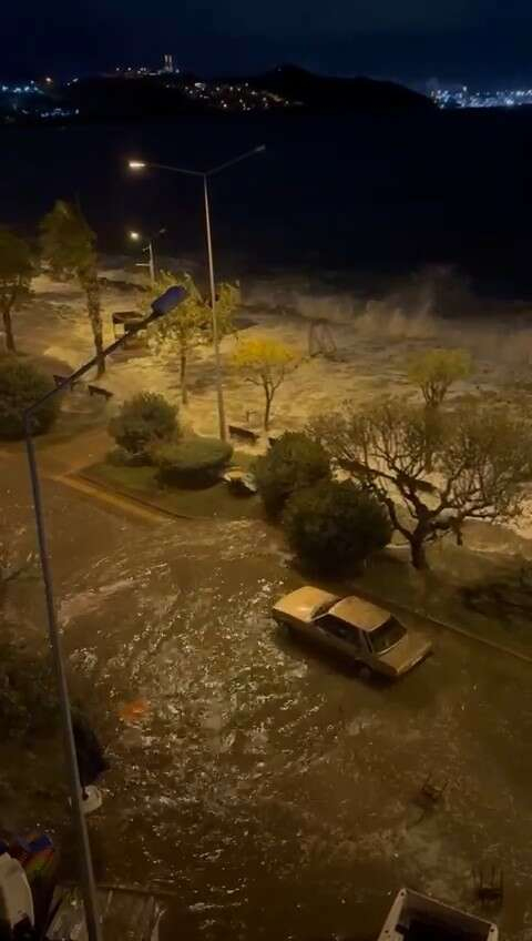 Bursa’nın Gemlik ilçesinde şiddetli fırtına sebebiyle deniz taştı. Bir gemi yan yatarken, ilçedeki sokaklar da göle döndü.