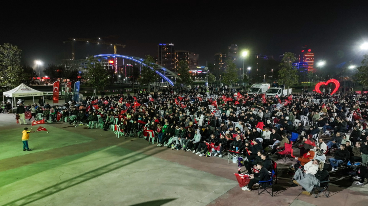 Bursa Büyükşehir Belediyesi, A Milli Futbol Takımı’nın Dünya Kupası Play-Off Yarı Final eşleşmesinde Romanya ile oynadığı karşılaşmayı Hüdavendigar Kent Parkı ve Görükle Gençlik Merkezi’nde kurduğu dev ekranlarda Bursalılarla buluşturdu. Yüzlerce kişi, ellerinde Türk bayraklarıyla maçı büyük bir coşkuyla takip etti.