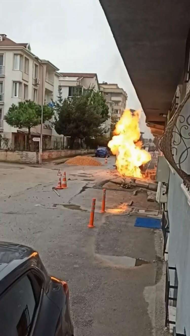 Bursa'da altyapı çalışması için kazı yapan kepçe operatörünün dalgınlığı mahalleliyi havaya uçuracaktı. Doğalgaz borusunun patlaması sonucu çıkan yangına itfaiye ekipleri müdahale etti. Patlama ve alevler mahallede büyük paniğe yol açtı.