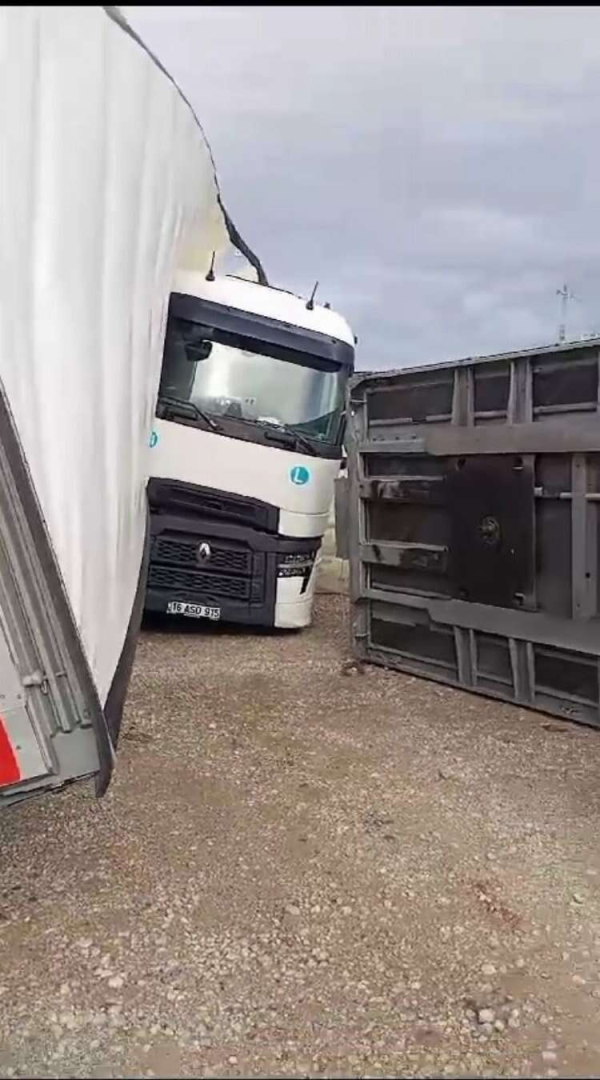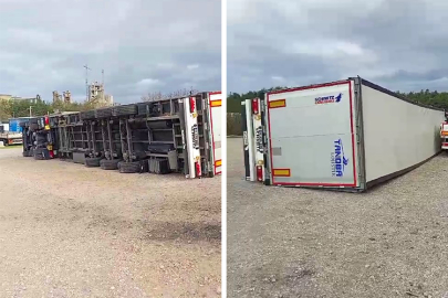 Bursa'da etkili olan fırtına TIR'ları devirdi