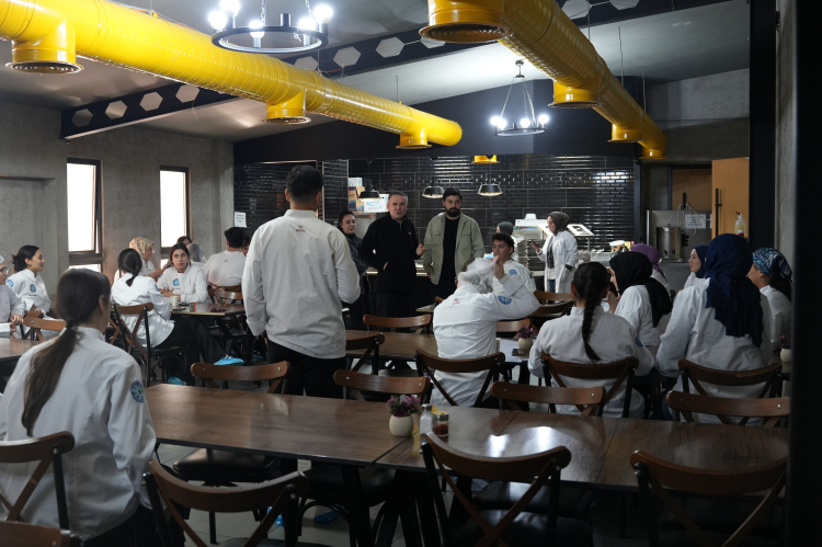 Ziyaret süresince MEKAŞ Koordinatör Aşçıbaşı Sinan Özdemir tarafından menü planlama, malzeme kabul ve depolama, üretim akış süreçleri, gıda güvenliği ve hijyen uygulamaları, HACCP standartları, ısı kontrolü ve porsiyonlama teknikleri gibi profesyonel mutfak yönetimine yönelik konularda detaylı bilgilendirme yapıldı.