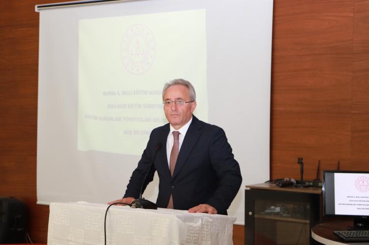 İl Milli Eğitim Müdürü Dr. Ahmet Alireisoğlu konuşmasında şunları söyledi: "Geleceğimizin teminatı olan çocuklarımız bizlere emanet. Değerli Meslektaşlarım, okulun ilk günü, ilk motivasyonu sizlerin cümlelerinizle başlar. Öğrenciyi motive etmek, güzel temennilerle, onlara iyi dersler dileyerek, başlamak sizin ilk değerlendirdiğiniz potansiyel ve fırsattır. Yönetici olarak bir okula başladığınızda veli, öğretmen ve öğrenci sizin için beyaz bir sayfa açar. Vatandaşın memnuniyetini mutluluğunu, çocuğun varoluşunu destekleyin, besleyin. Çünkü bu bir ekip işi. Aynı zamanda öğretmenlerimiz de bize emanet. Onların motivasyonu, onların değerli ve kıymetli hissedildiği bir alanda çalışma istekleri ve çalışmaları siz okul müdürlerimizin liderliğine emanet edilmiş bir durum. Okullarımızda güven ortamını inşa etmeliyiz. Dolayısıyla bizim en büyük sermayemiz oluşturduğumuz güvendir. Türkiye Yüzyılı Maarif Modeli ile yeni müfredatımızda öğrenci odaklı bir yaklaşım benimsenmiştir. Yeni müfredatımız, temelinde beceri eğitimi yer alan bir yapı oluşturularak sadeleştirilmiştir. Yeni müfredat, çocukların oynamasını, okumasını ve sosyalleşmesini desteklerken, günümüzün gerektirdiği kavramlarla güncellenmiştir. Bursa’daki eğitime yön veren tüm yöneticilere başarılar diliyor ve emekleri ile fedakârlıkları için teşekkür ediyorum.”