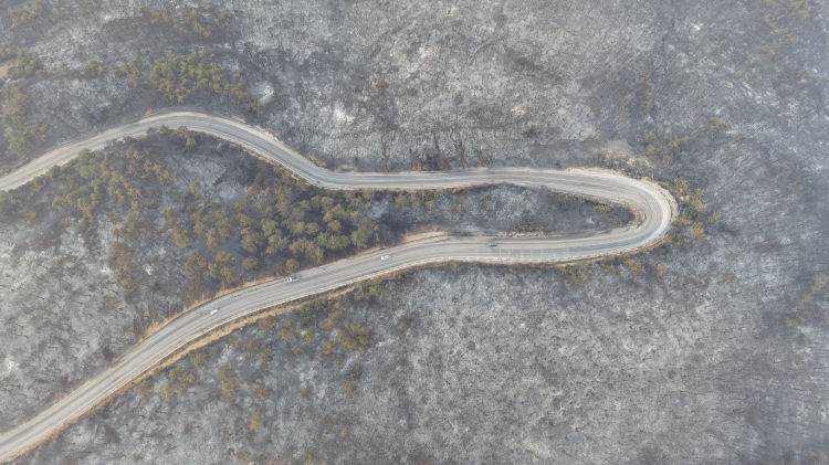 Bursa'da 100 hektardan fazla alanı küle çeviren 3 köyde 485 hanedeki 1765 kişinin tahliye edilmesine sebep olan yangın ekiplerin gece boyunca canlı başla mücadelesi sonrası büyük ölçüde söndürüldü. İğdir ve Narlıdere köylerinde İHA ekiplerinin kaydettiği dron görüntüleri çamla bezeli ormanlık alanın griye döndüğünü gösteriyor.