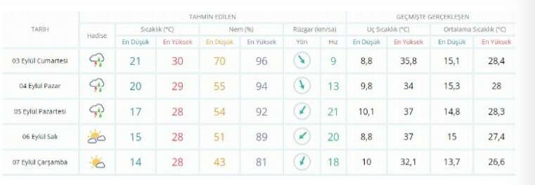 BURSA İÇİN 5 GÜNLÜK TAHMİN