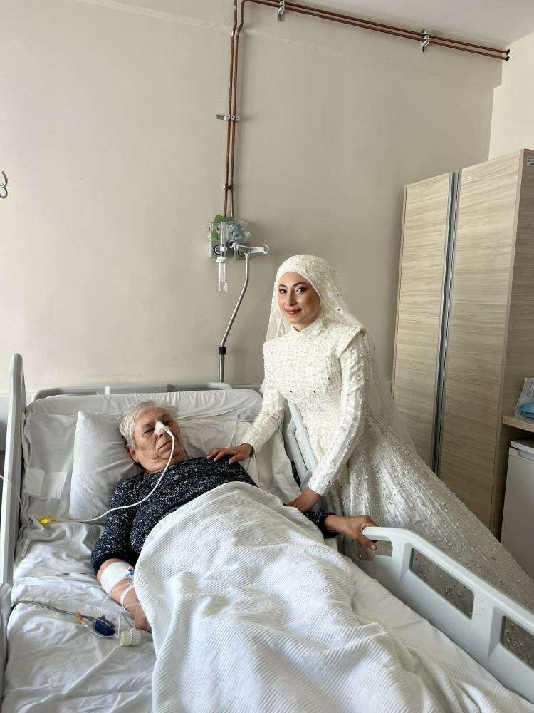 Bursa'da hastanedeki babaanneye gelinlikle ziyaret