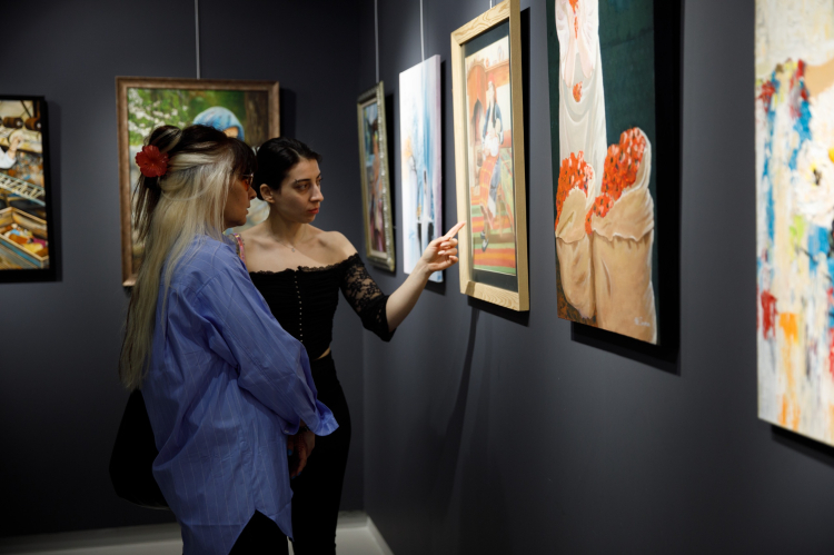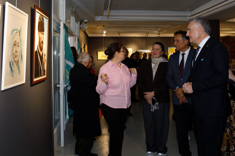 Açılış konuşmalarının ardından katılımcılar sergide yer alan eserleri tek tek inceleyerek sanatçılarla sohbet etti.