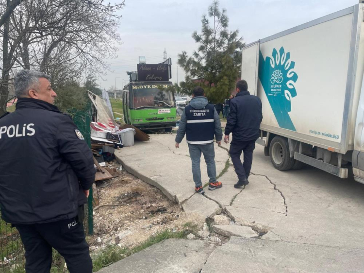Nilüfer ilçesinin 23 Nisan Mahallesi'nde kaldırımları işgal ederek yemek hizmeti sunan minibüsler, onlarca polis ve zabıtanın görev aldığı operasyonla kaldırıldı.