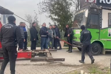 Sahiplerinin direnmelerine ve gerginlik yaşanmasına rağmen ekipler, çekiciler yardımıyla birbirine yakın iki noktada bulunan minibüsleri kaldırdı.