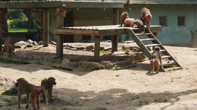Hayvanat bahçesindeki diğer hayvanların bazıları sıcaktan korunmak için sürekli gölge alanları seçerken, beyaz gergedanların ise çamurlu su birikintisine girerek serinlemeye çalışması dikkat çekti.