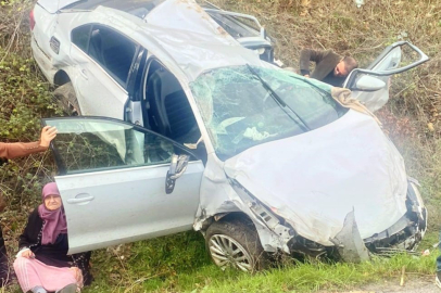 Bursa'nın Kestel ilçesi Ümitalan mevkiinde meydana gelen kazada TIR ile çarpışan otomobil şarampole uçtu; 2 kişi yaralandı.