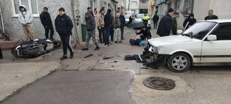 Kaza Mesudiye Mahallesi 1. Yeni Sokak’ta meydana geldi. Sürücü İbrahim K.(50) yönetimindeki 16 AKD 375 plakalı motosiklet ile Ferdi Ö. idaresindeki 16 KDA 33 plakalı otomobil çarpıştı. Çarpışmanın etkisiyle devrilen motosikletin sürücüsü yaralandı. Yaralı kaza yerine sevk edilen Ambulansla İnegöl Devlet Hastanesine kaldırıldı.