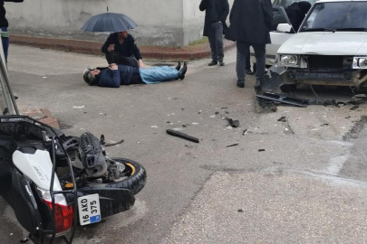 Bursa'nın İnegöl ilçesindeki kazada otomobil ile çarpışan motosiklet sürücüsü yaralandı.