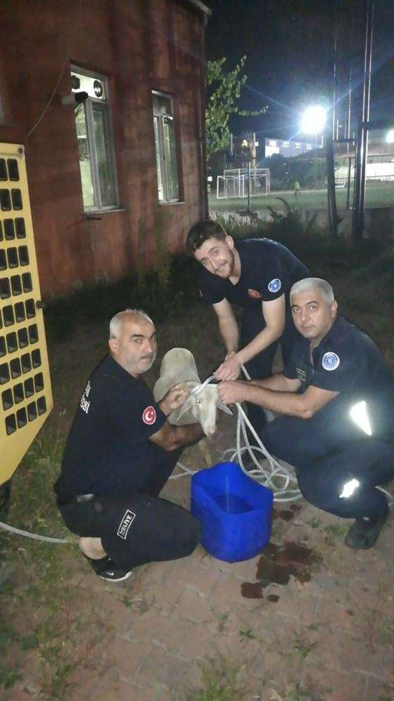Bursa'nın İnegöl ilçesinde foseptik çukuruna düşen koyun, itfaiye ekiplerince kurtarıldı.