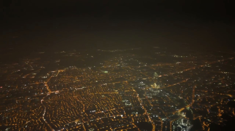 Puslu ve kirli hava dronla çekilen görüntülerde şehir ışıkları bile görünmez hale geldi. Gece boyunca devam eden kül etkisi bugün de devam ediyor.