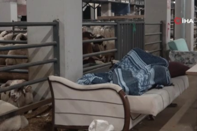 Bursa'da bayram telaşı başladı. Demirtaş'ta bulunan hayvan pazarına farklı illerden kurbanlık getiren satıcılar, gece müşteriler gidince hayvanlarla koyun koyuna yatıyor. Satıcılar, büyük emekle yetiştirdikleri hayvanlarının yanından bir an olsun ayrılmıyor. Bir yıl boyunca büyüttükleri hayvanları satmak için pazara gelen besiciler, hayvanların başından ayrılamadan gece gündüz nöbet tutuyor. Hayvanları için yaptıkları bölmelerde kurbanlıklarla birlikte uyuyan celepler, ahırlarda yemek yiyor ve dinleniyor. Ahırlarda battaniyeye sarılıp yatan satıcılar, piknik tüplerinde yemek ve çaylarını yaparak karınlarını doyuruyor. Hayvan pazarlarında seyyar helalar ve hayvan sahiplerinin banyo yapabilmesi için kapalı duşlar bulunuyor. Bazı çobanlar hırsızlıktan korktukları için koyunlarla beraber yattıklarını söyledi.