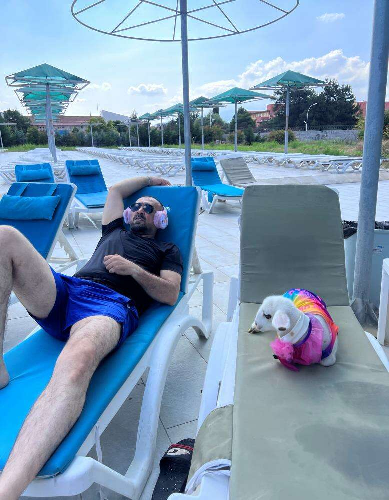Bursa’da fenomen ciğerci Ali Koçak, Kurban Bayramı tatiline minik kuzusu Suzan ile birlikte gitti. Suzan ile beraber doyasıya eğlenen Koçak, kuzusuyla hem güneşlendi hem de havuz keyfi yaptı.
