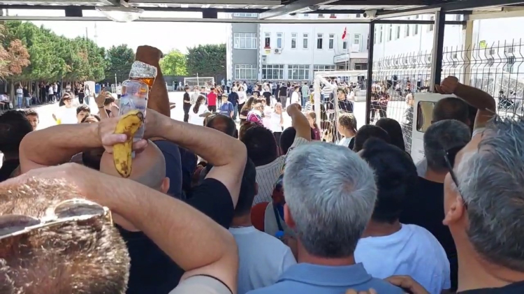 Okulun giriş kapısının önünde toplanan veliler büyük kargaşa yaşarken, kimi su vermek istedi kimi bir sorun olup olmadığını sordu kimi ise el sallamak için uzun süre bekledi.