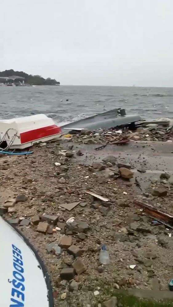 Dev dalgaların getirdiği kaya parçaları, yakın sokak aralarındaki araçlarda ufak çaplı maddi hasar meydana getirdi. Sahile vurup geri dönen dev dalgalar sebebiyle, denizin sahil şeridi çamura büründü.