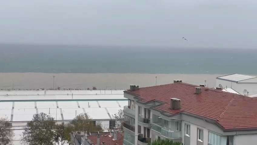 Bursa’nın sahillerinde etkili olan lodos ve fırtına ortalığı birbirine kattı. Sahile vuran dev dalgalar korku dolu anlar yaşatırken, deniz çamura büründü.
