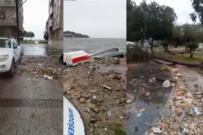 Bursa'da dün akşamdan beri etkili olan yağmur, lodos ve fırtına sahil ilçelerini birbirine kattı. Gemlik ve Mudanya'da dev dalgalar korku dolu anlar yaşatırken, sahil şeridindeki parklar dalgaların getirdiği kaya parçalarıyla doldu. Sahile demirli balıkçı tekneleri yükselen dalgalar sebebiyle alabora oldu.