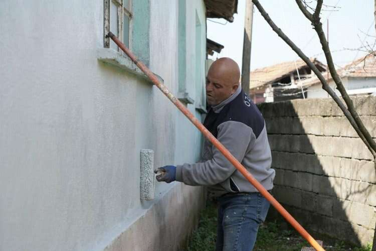 Bursa'da bir muhtar adayı seçim vaadi olarak verdiği sözü yerine getirmek için yaşadığı köydeki tüm evleri kendi imkanlarıyla boyuyor.