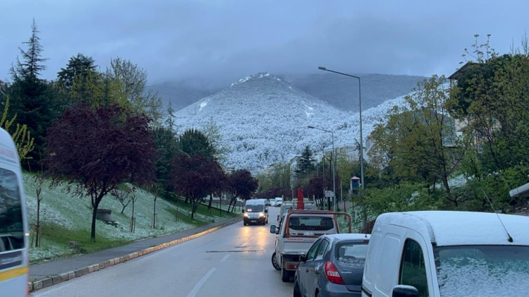 Bursa'da nisan ayında yağan kar, dağlık alana yakın olan mahalleleri beyaza bürüdü. Sabah işe gitmek için çıkan vatandaşlar, telefonlarıyla kar görüntüsü çekti.