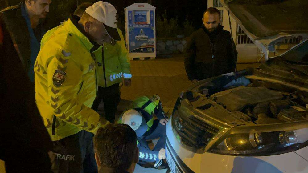 Bursa'nın İnegöl ilçesinde uygulama yapan polis ekiplerinin dikkati üzerine durdurulan aracın motor kısmında mahsur kalan kedi ölümden son anda kurtarıldı.