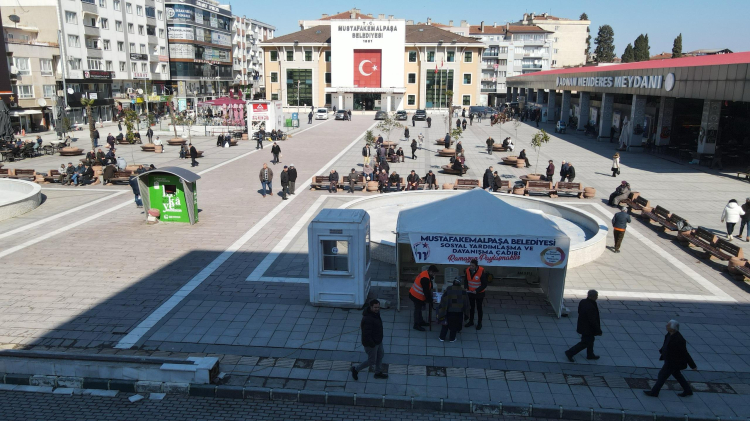 Ramazan ayının manevi iklimi, Mustafakemalpaşa’da dayanışma ve paylaşma ruhuyla birleşiyor. Mustafakemalpaşa Belediyesi, Ramazan ayı boyunca ihtiyaç sahibi vatandaşların yanında olmak ve Ramazan’ın bereketini hep birlikte yaşamak amacıyla Belediye Meydanı’na Yardım çadırı kuruyor.